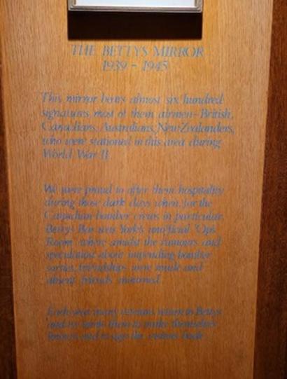 The following day commenced with some members visiting Betty’s Team Room in York. Betty’s Tea Room was formally known as Betty’s Bar and was a popular place for socializing during the Second World War. Over 600 airmen engraved their names in mirrors in the establishment, many never returned after being killed on missions. The Tea Room remains a popular establishment for locals and retains its historical importance to the Second World War.